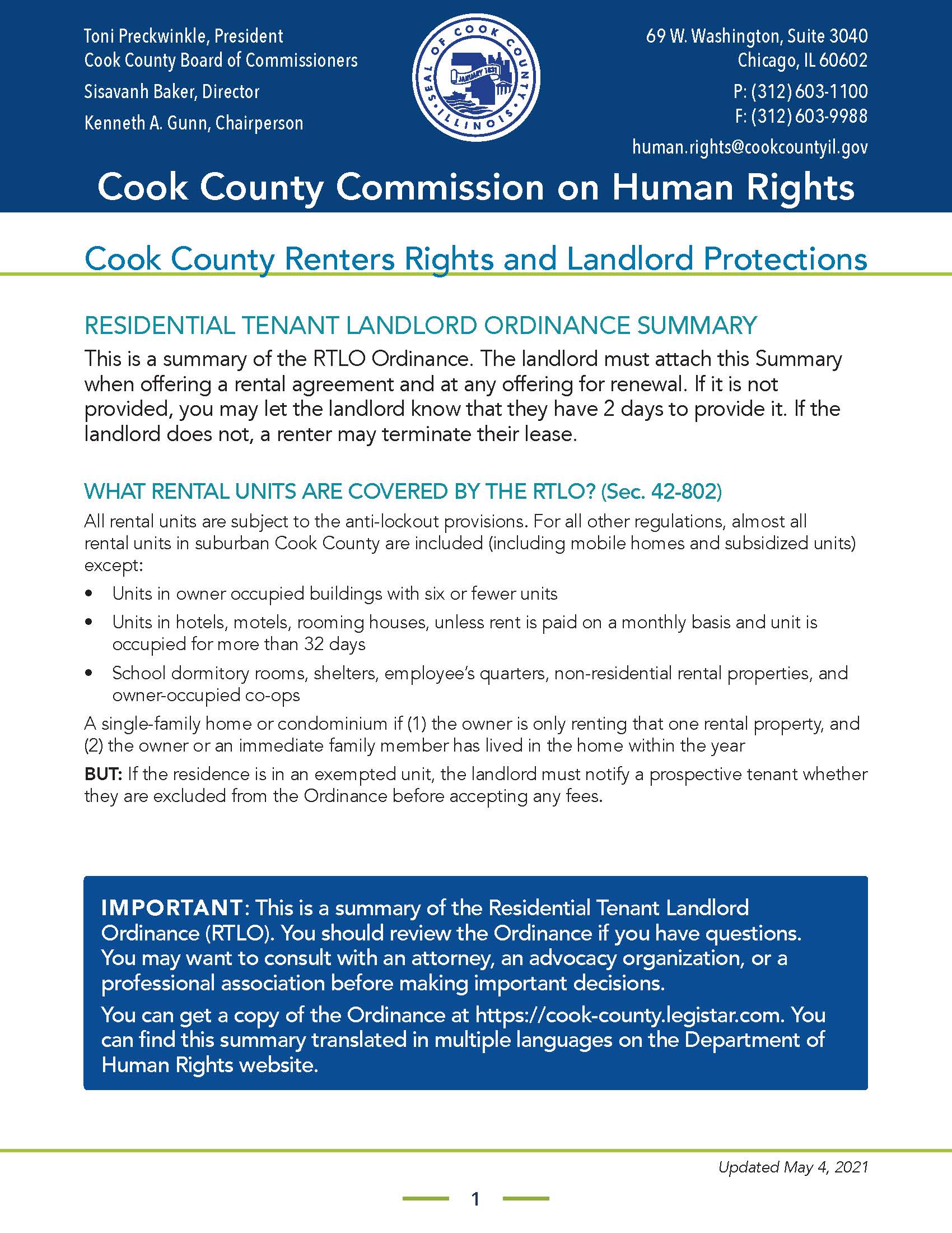 Summary of Residential Tenant Landlord Ordinance (English)